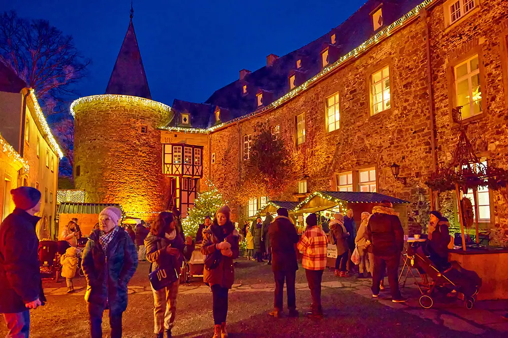 Schloss Hohenlimburg in Hagen lädt zum »romantischen Weihnachtsmarkt«. Im Schlosshof und im Inneren des historischen Gemäuers bieten Händler handverlesene Geschenkideen aus Holz, Eisen, Silber oder Keramik sowie regionale Produkte und exquisites Kunstgewerbe. Dazu gibt es köstliche Speisen und erlesene Getränke an den vielfältigen Ständen – Von traditionellen Weihnachtsmarkt-Spezialitäten bis hin zu besonderen Gaumenfreuden ist für jeden Geschmack etwas dabei. Der Eintritt kostet neun Euro, Kinder vier Euro.