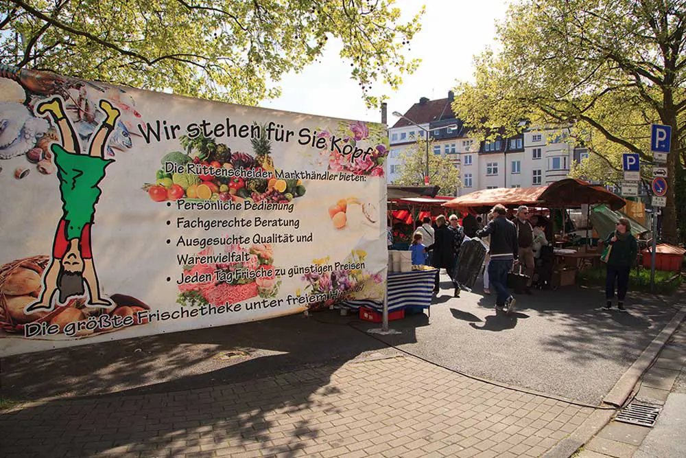 Ein Spaziergang auf der Rü ist immer eine gute Idee - am Samstag könnt ihr ihn direkt noch mit einem Besuch auf dem Wochenmarkt kombinieren. Der hat von 8 bis 14 Uhr geöffnet. Hier findet ihr nicht nur ausgefallene Käsesorten, italienische Backwaren oder Bio-Fleisch aus der Region sondern auch saisonales Obst und Gemüse, wie die heimischen Superfoods Grünkohl, Rote Bete, Rosenkohl und Spinat.