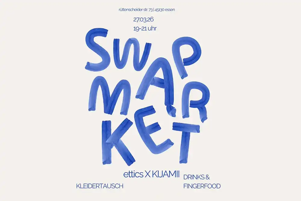 Am Freitag laden ettics und das Kijamii Rösterei Café von 19 bis 21 Uhr zur Kleidertauschparty an der Rü ein. Bringt bis zu drei gut erhaltene und gewaschene Teile mit und tauscht sie gegen neue Lieblingsstücke. Dazu gibt’s Drinks und Fingerfood.